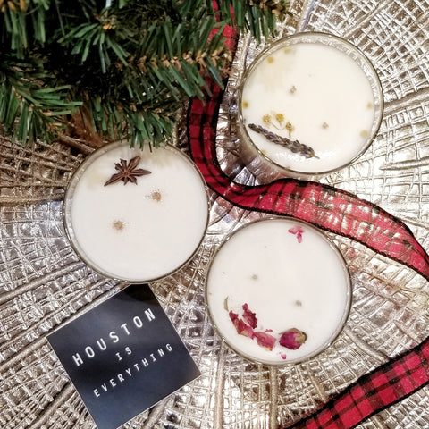 All candles are hand poured in Austin, Texas, with 100% soy wax, biodegradable glitter, and lots of Texas love.