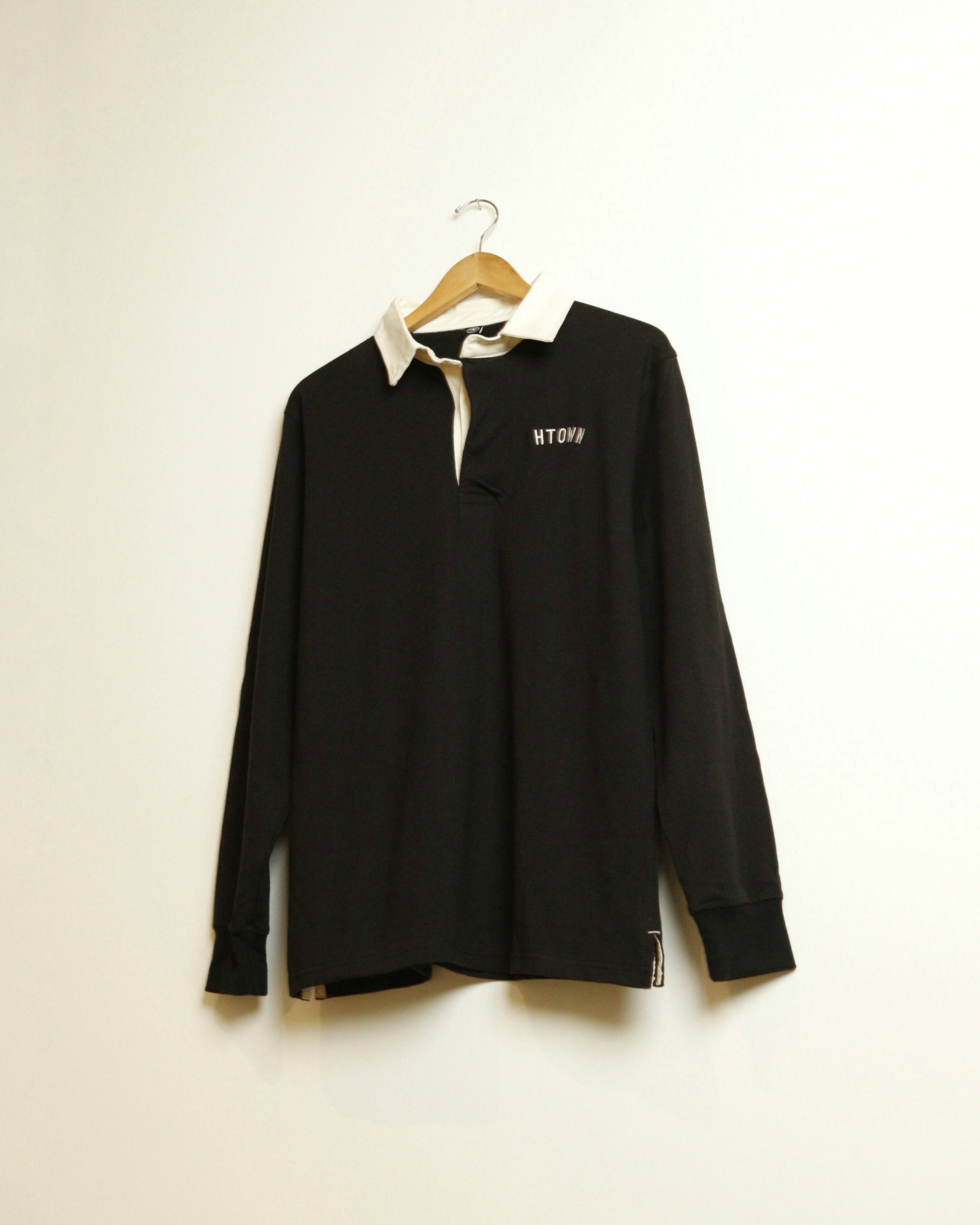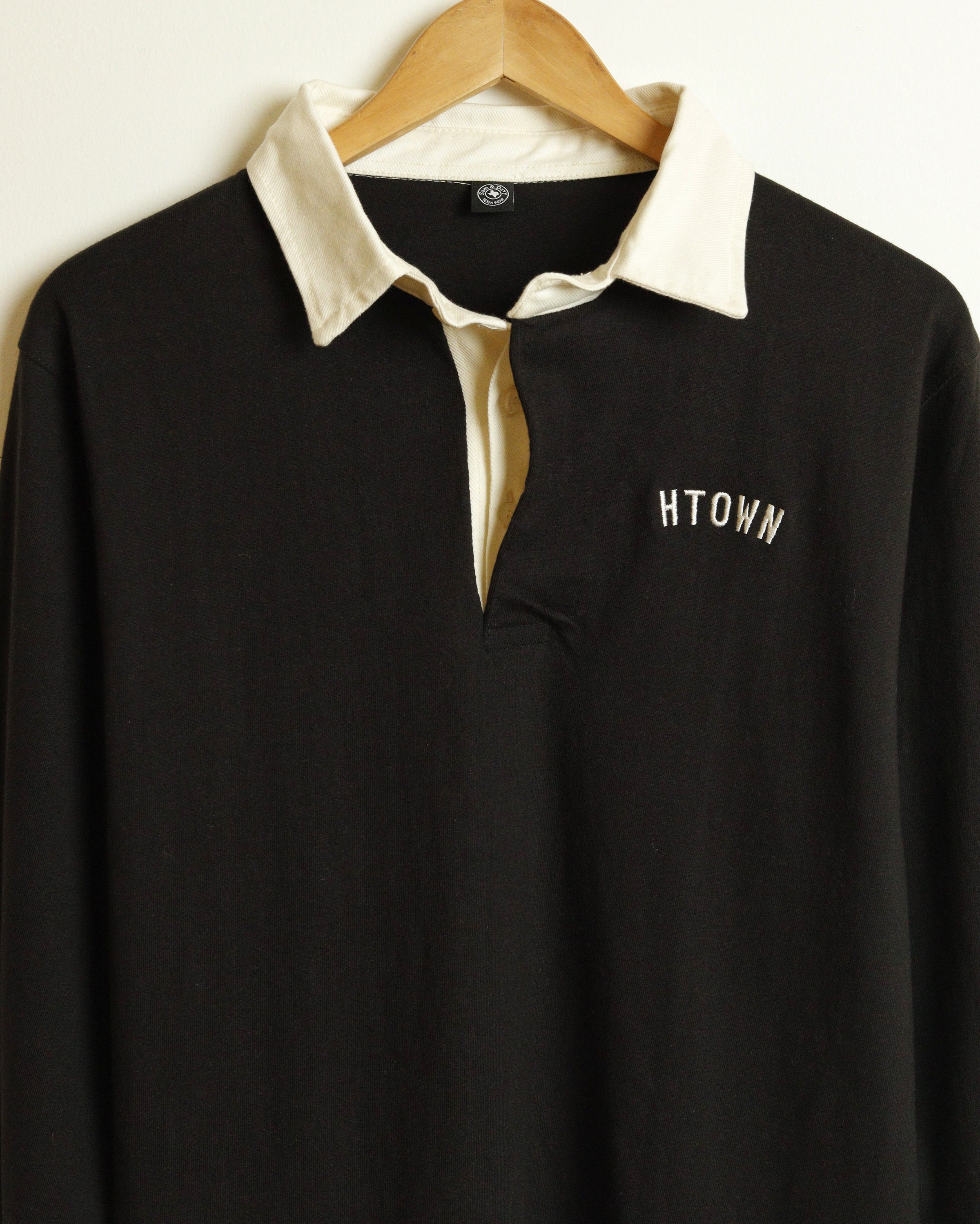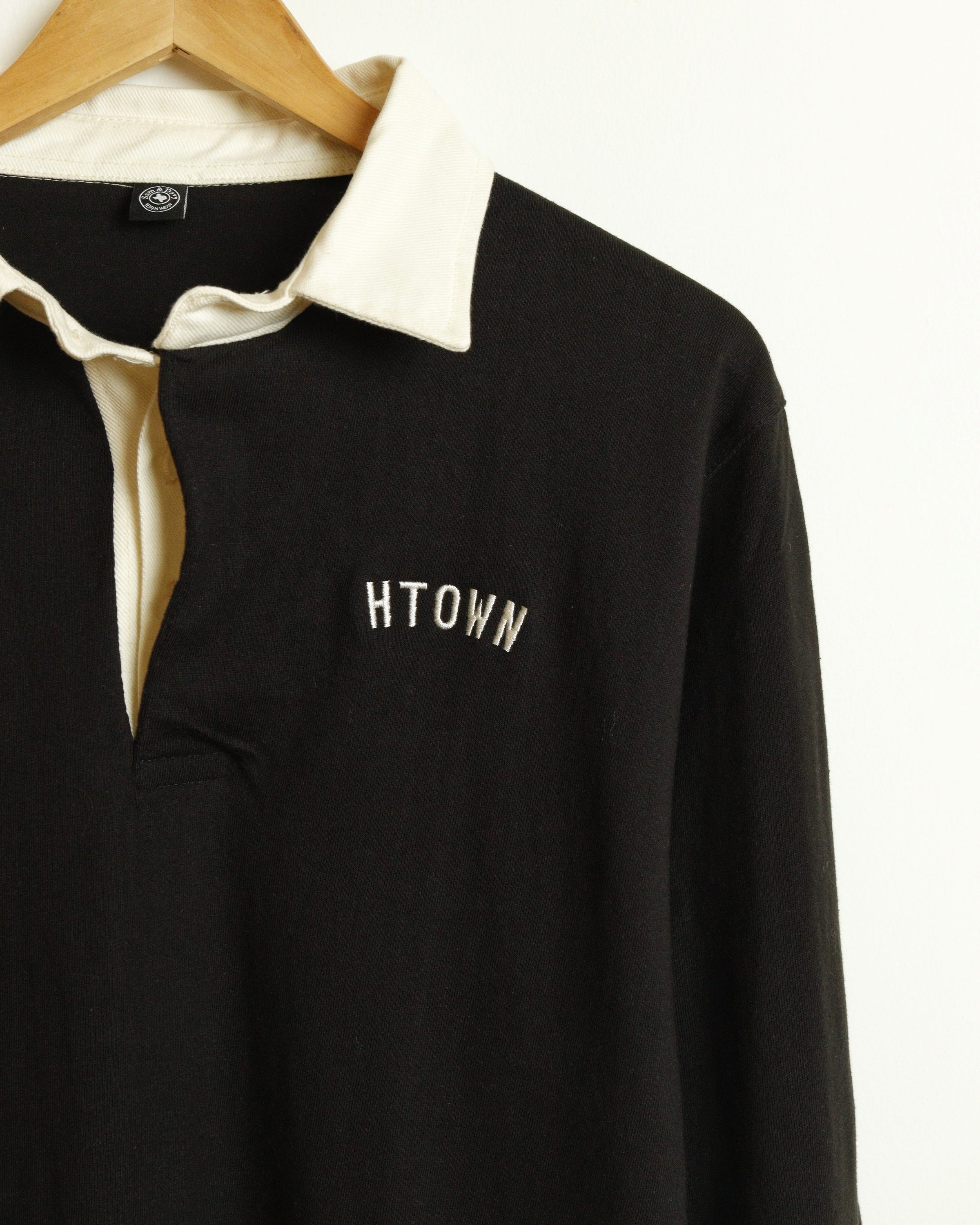 A premium vintage style two-tone rugby polo with our classic HTOWN design embroidery.