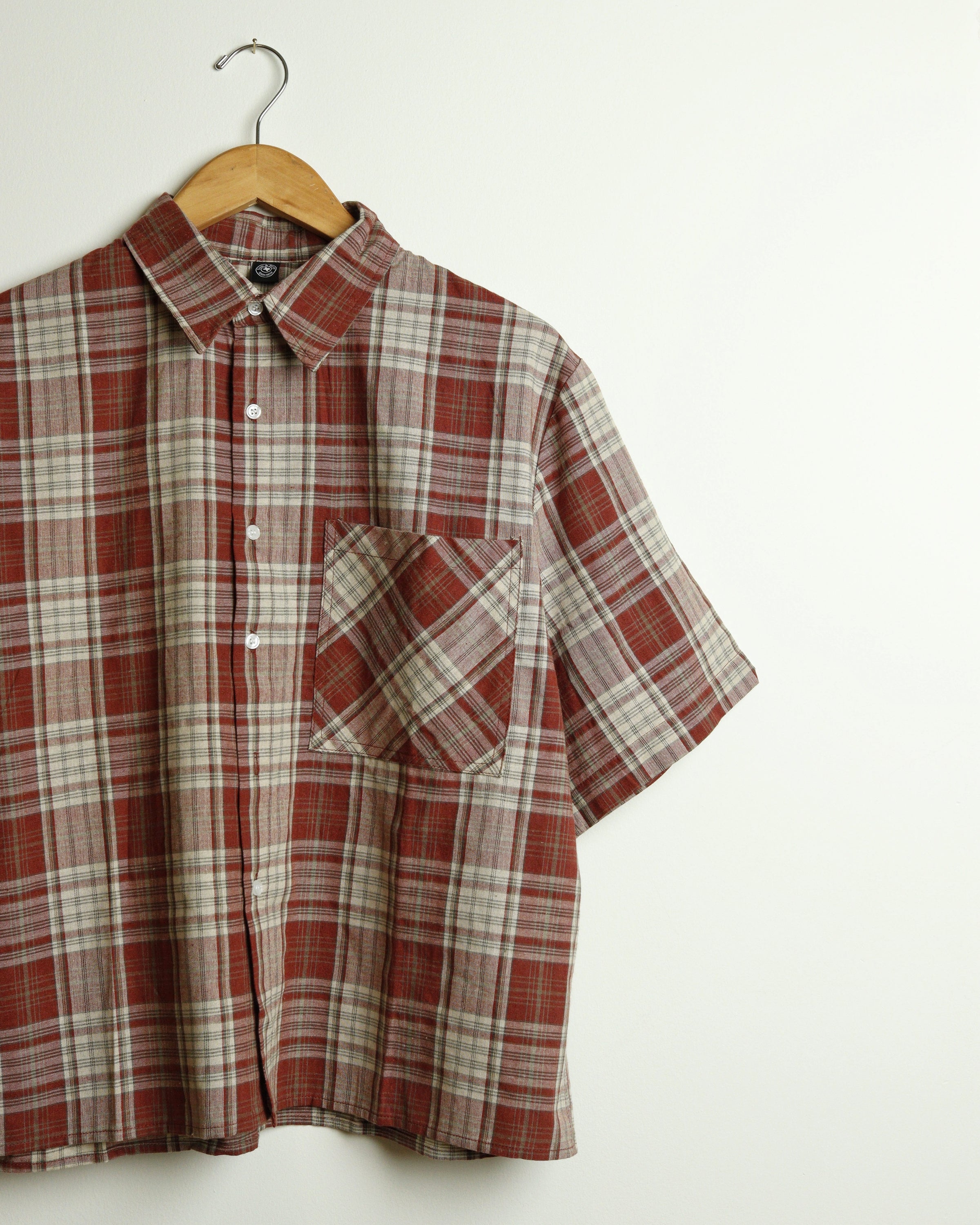Houston is Everything Unisex Plaid Cropped Shirt (Crimson Red)