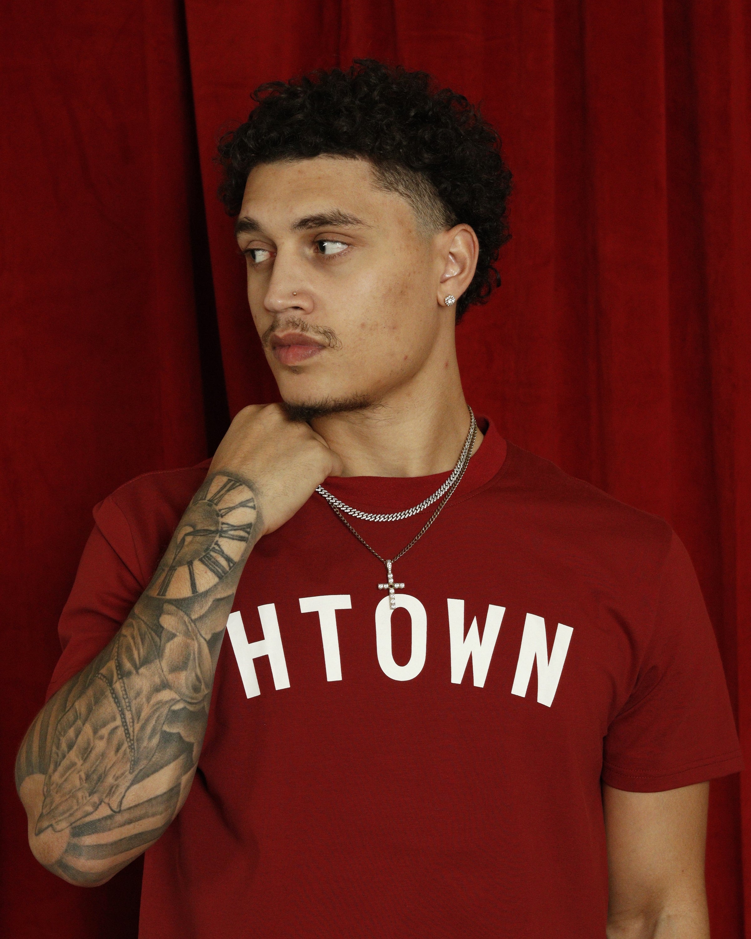 HTOWN Stretch Tee (Rose Red/White)