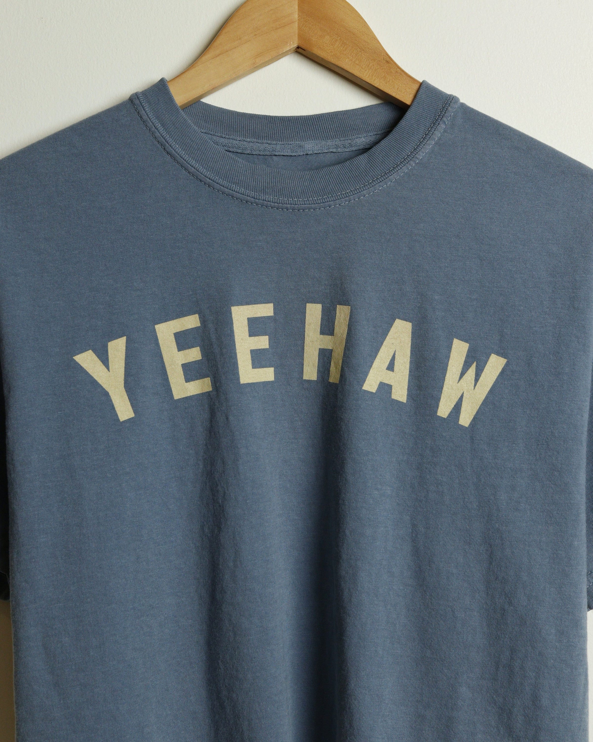 Yeehaw Vintage-wash Crop Tee (Denim Blue)